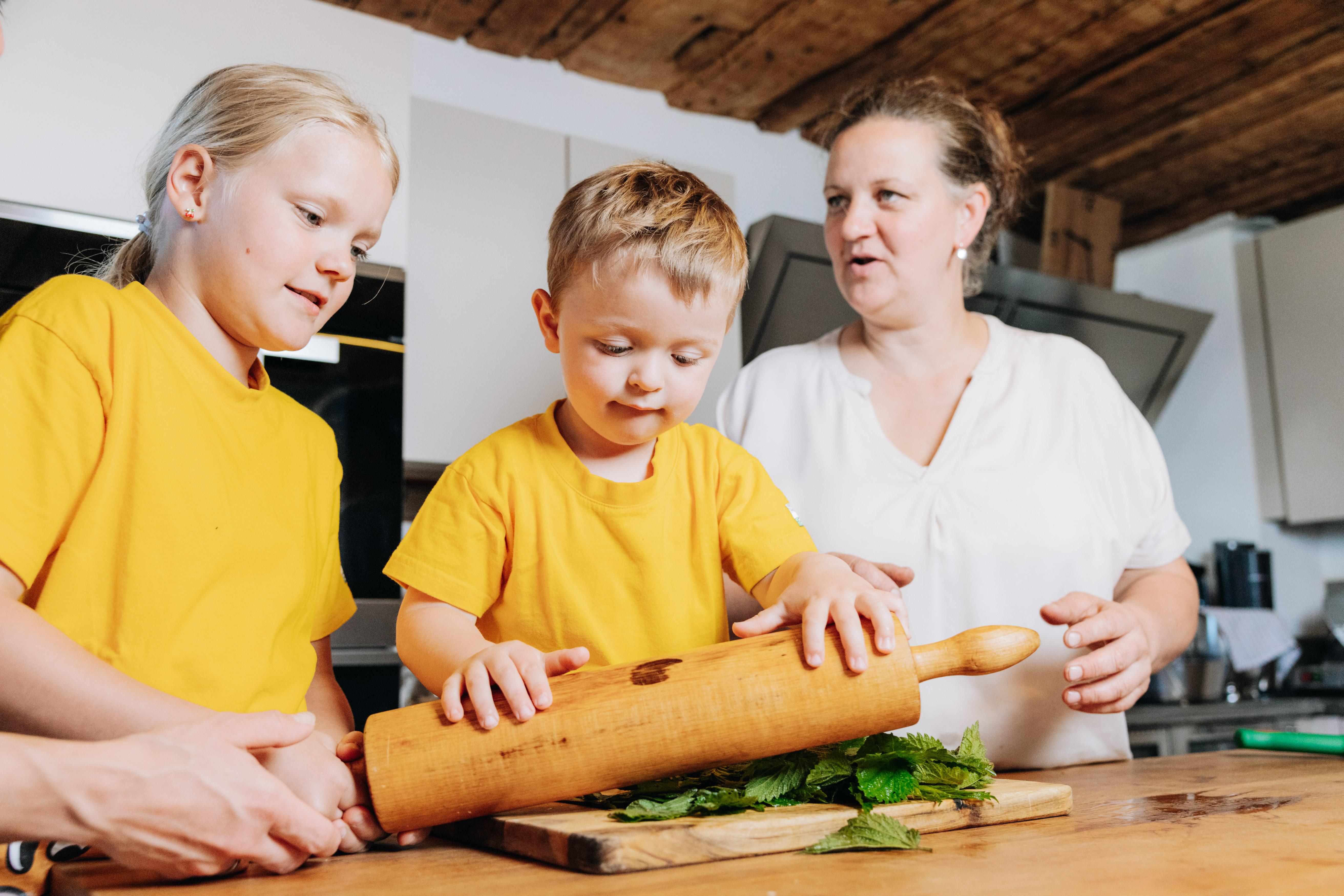 Bäuerin Margit und Bauer Leo mit Kindern