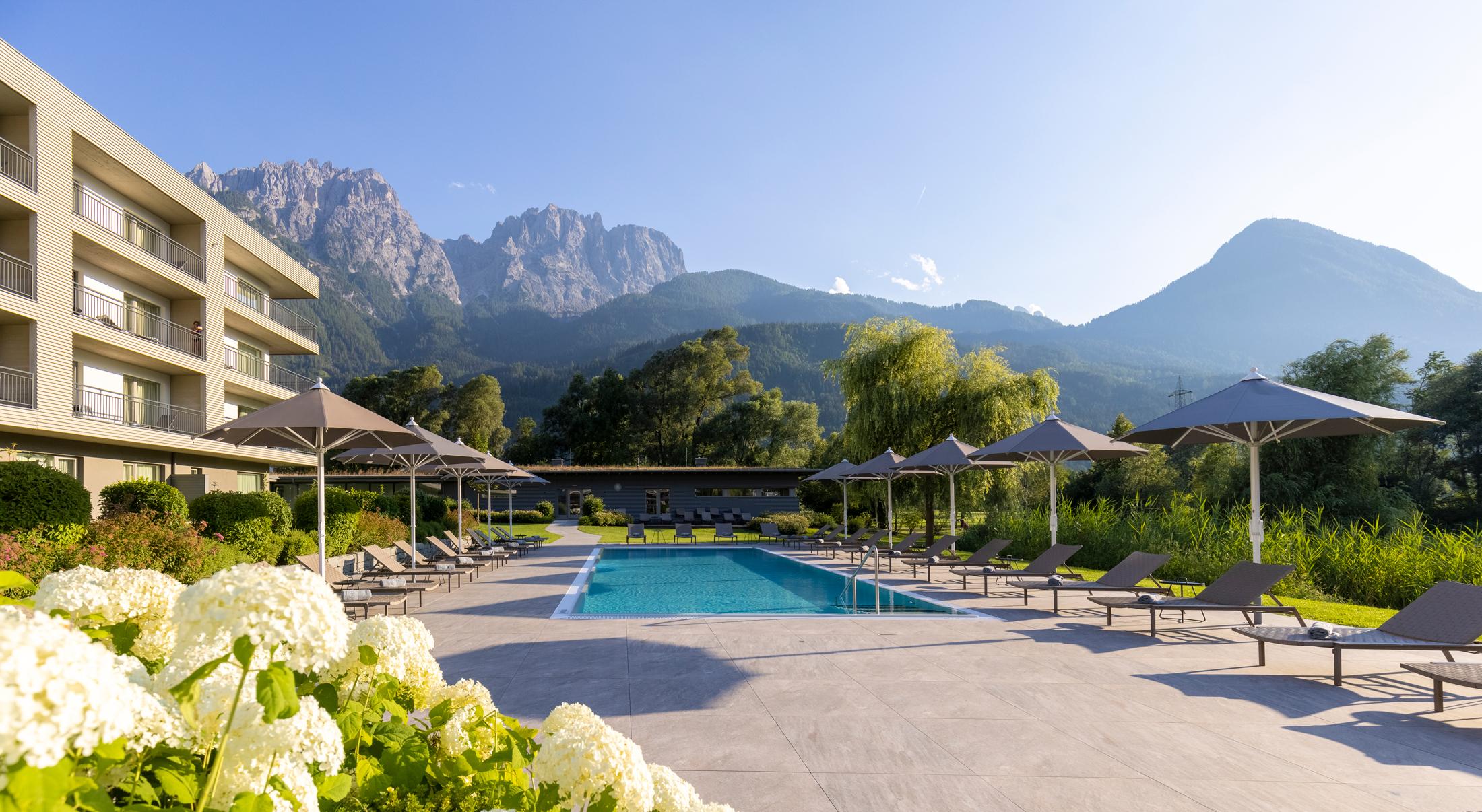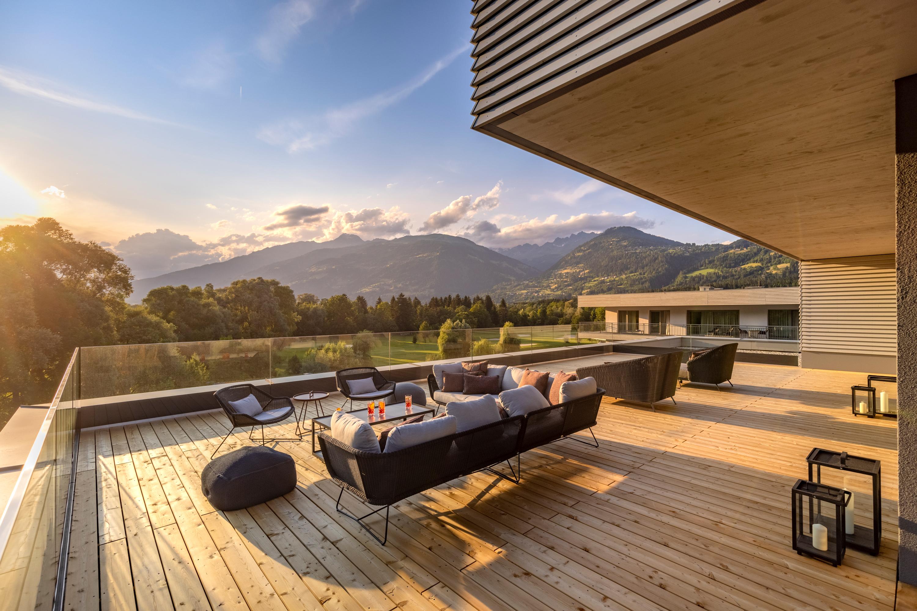 Das Dolomitengolf Suites***** bietet einen herrlichen Blick auf den benachbarten 36-Loch Golfplatz und die gepflegte Gartenanlage. Sie wohnen in eleganten Suiten (45 bis 205 qm Wohnfläche) und können am Fuß der Lienzer Dolomiten im großen beheizten Pool und auf den gemütlichen Lounge-Terrassen herrlich entspannen. Das Küchenteam im Hauben-Restauarant "Vincena" zelebriert allabendlich ein abwechslungsreiches Gourmet-Wahlmenü.