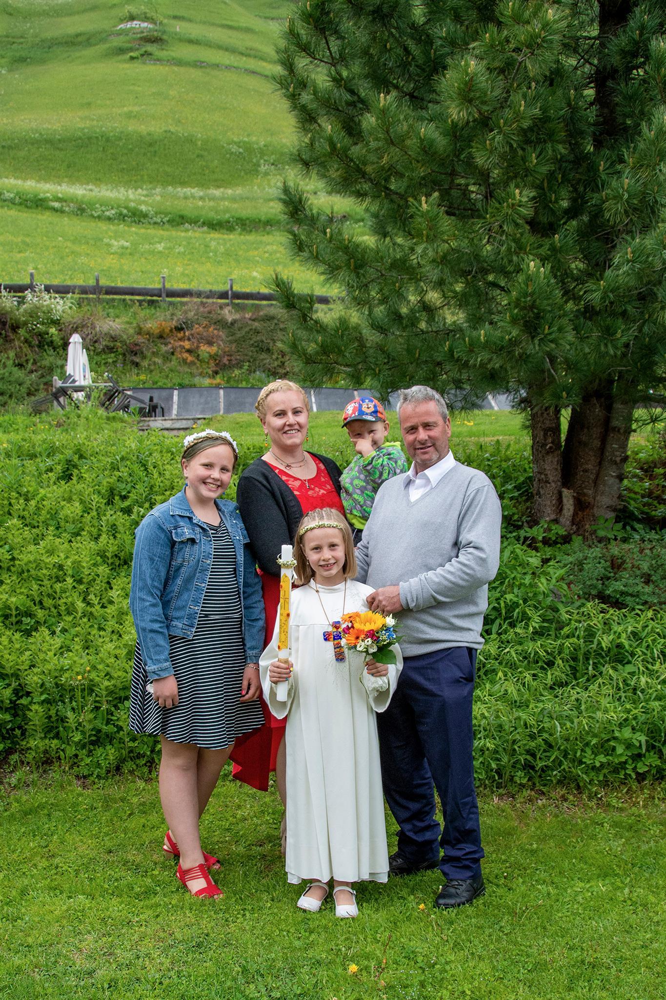 Unsere Familie vermietet schon in dritter Generation. Zu uns gehören Walter (gelernter Tischler), Michaela (gelernte med. Masseurin), Annemieke, Ylvi und Till. Wir wohnen zu fünft mit unseren Katzen im sehr Familiär geführten Haus Alpenfrieden. Es gibt zwei Wohnungen und zwei Zimmer mit Frühstück. Hof Führungen oder sonstige Sachen rund um das Leben einer Bauernfamilie lassen wir euch gern teilhaben. Hof Produkte, wie z.B. Milch oder Eier können gern bei uns bestellt werden. Bei Fragen oder sonstigen Problemen sind wir immer erreichbar.