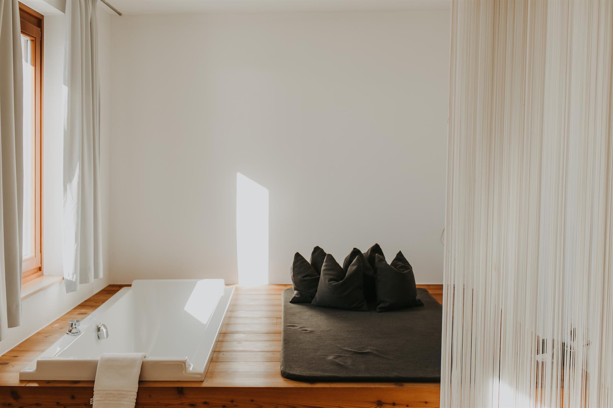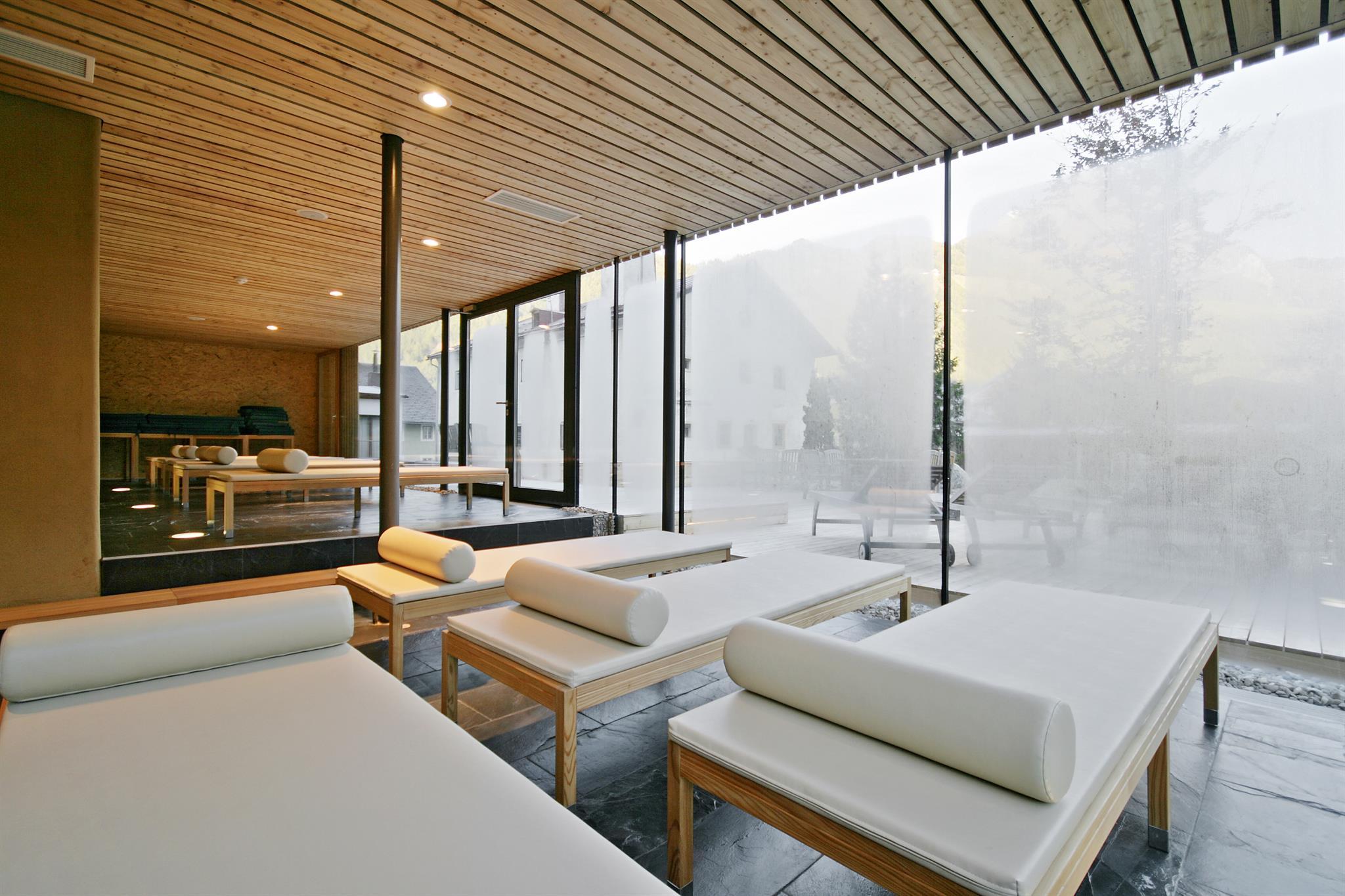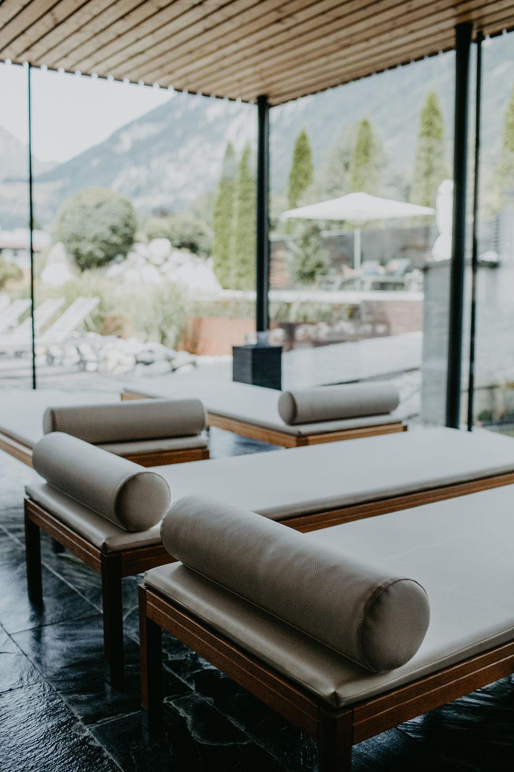 Für Ihre Entspannung haben wir einen Ort der Ruhe geschaffen: Unsere Sauna und der naturbelassene Pool bieten Ihnen die perfekte Möglichkeit, Körper und Geist zu regenerieren. Im großzügigen Ruheraum können Sie die Stille und den Ausblick auf die majestätischen Berge in vollen Zügen genießen.