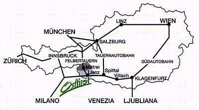 Auto: München - Kufstein - Felbertauern - Matrei in Osttirol - auf der linken Seite oberhalb des Ortes gegenüber des Kirchturmes links abbiegen. Check-In: ab 16.00 Uhr Check-Out: bis 10.00 Uhr