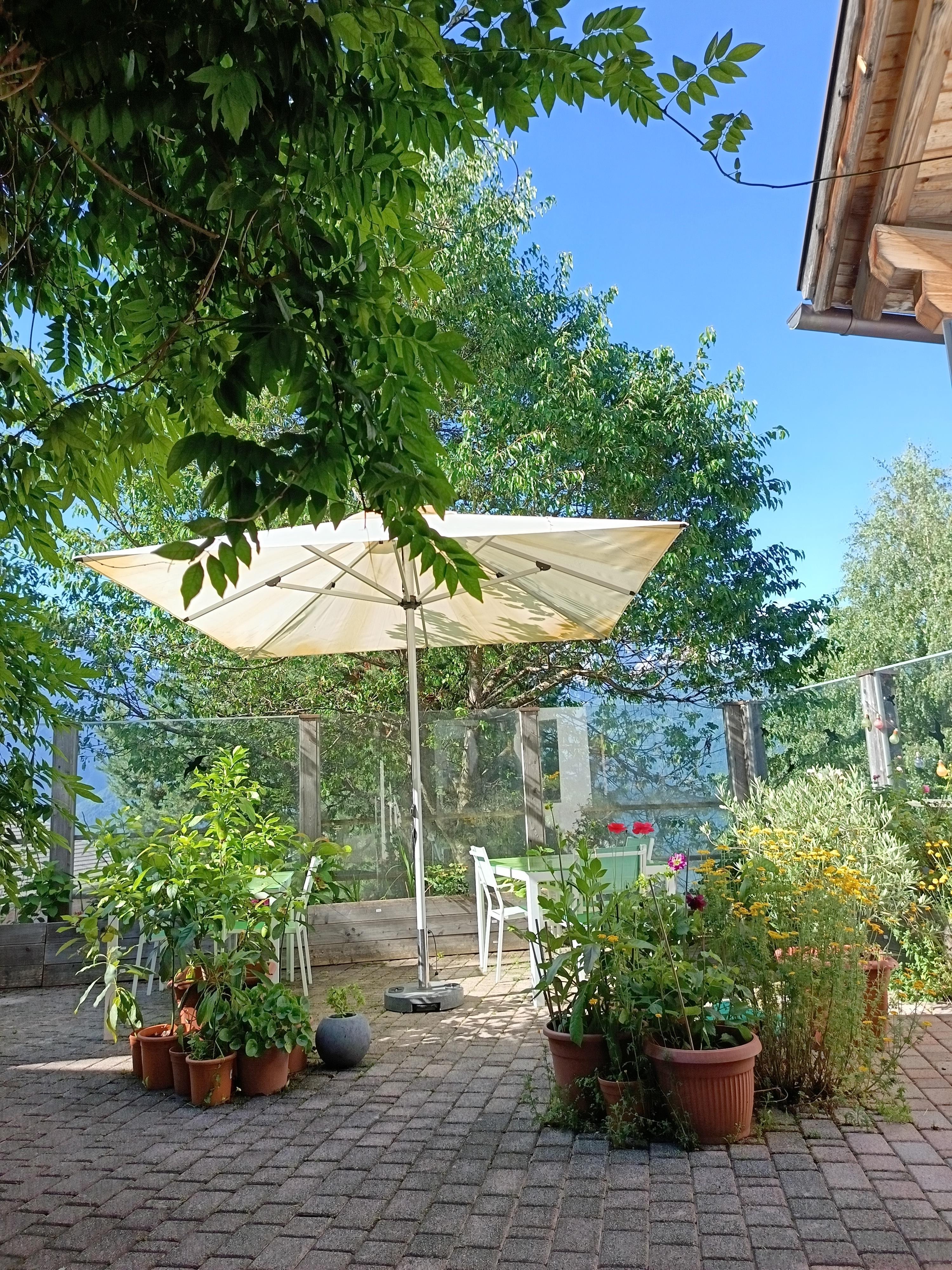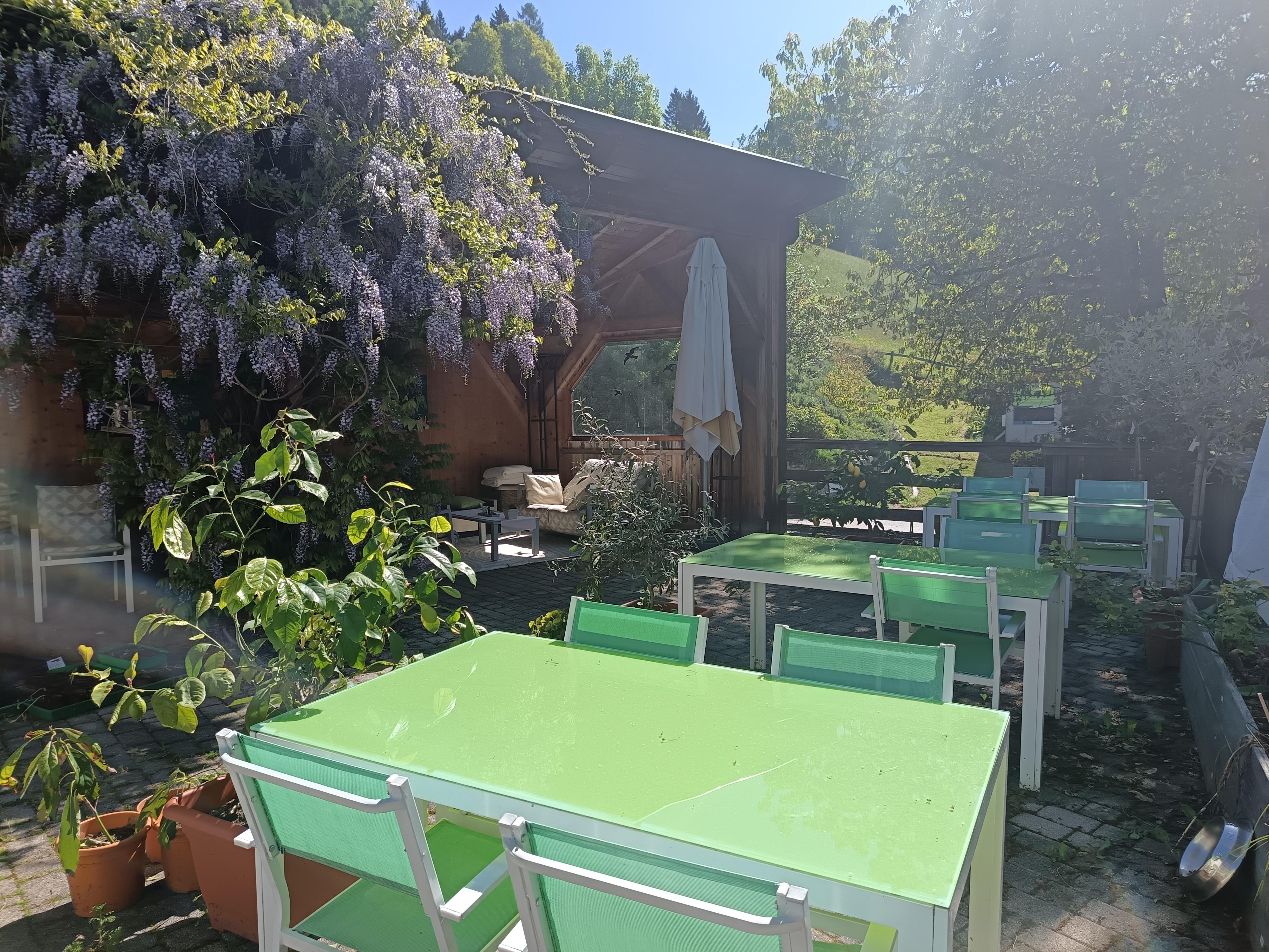Der Gasthof wird nachhaltig bewirtschaftet. Die Sonnenterrassen, ein wilder und üppiger Kräuter- und Naturgarten mit Naturteich runden das Angebot ab.