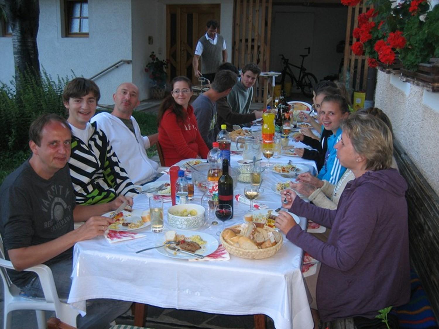 Manchmal treffen sich Gäste und Gastgeberfamilie abends auf der Terrasse und lassen den Tag bei einem Glas Wein gemütlich ausklingen.
