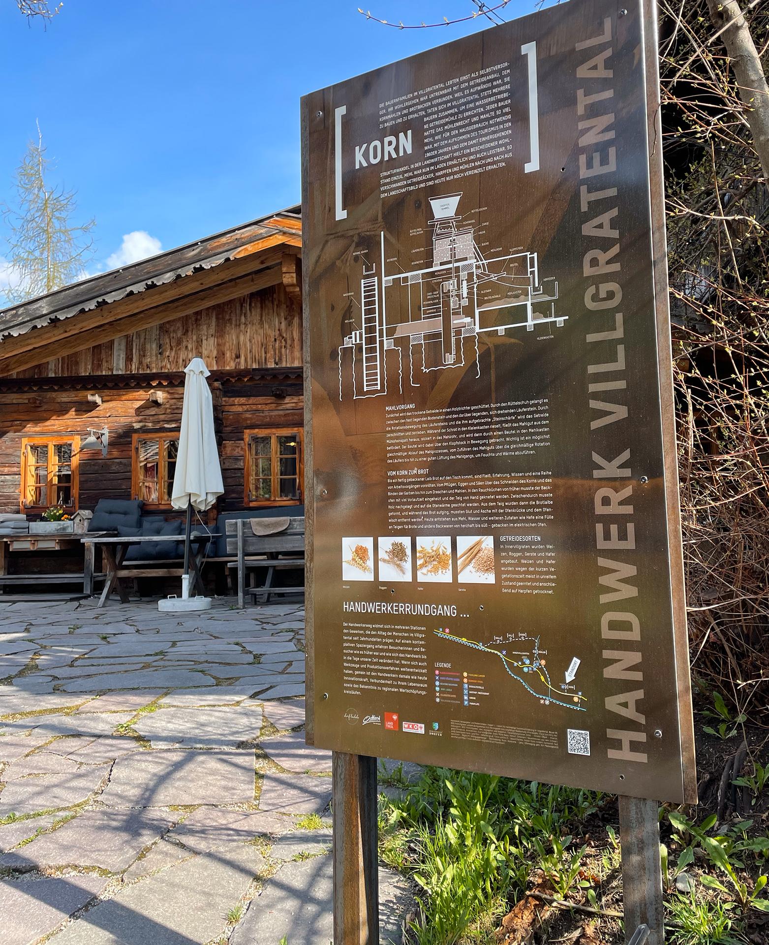 Der Handwerkerrundgang in Innervillgraten widmet sich in mehreren Stationen den Gewerken, die den Alltag der Menschen im Villgratental seit Jahrhunderten prägten. Auf einem Spaziergang durch das Dorf erfahren Besucherinnen und Besucher auf Schautafeln und direkt bei den Handwerksbetrieben wie es früher war und wie sich das Handwerk bis in die Tage unserer Zeit verändert hat. Gestartet wird im dorf.ladele im Ortszentrum wo Handwerks- und Genussprodukte aus der Region erhältlich sind. Dort findet man auch die gratis Wanderkarte und Informationen zu den Handwerksbetrieben. Das dorf.ladele ist als Multifunktionsraum konzipiert und wirkt wie ein Vergrößerungsglas auf das Villgratental: Hier finden auch kleine Veranstaltungen, Lesungen und Degustationen statt. Der Weg verschafft einen spannenden Einblick in das, was das Villgratental ausmacht: Tradition, Innovation und Kooperation.